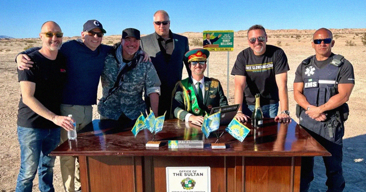 But there’s one glaring problem with all of this: the republic of Slowjamastan, like dozens of other micronations like it scattered around the globe, will likely never be recognized as a sovereign state by other nations of the world, meaning that Williams is mostly just playing an elaborate game of make-believe on his small plot of desert land.