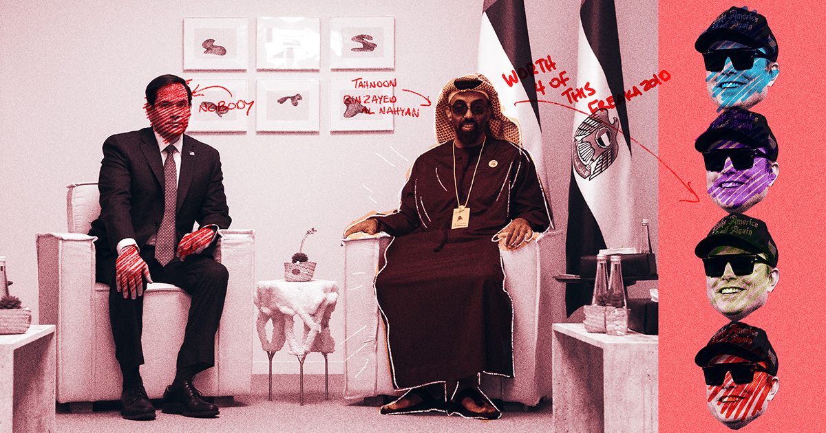 Ahead of the presidential election last year, the sheikh flew to the United States to meet with the South African-born billionaire at his Giga Texas factory and was seen posing outdoors — a major thing for Tahnoon, who suffers from an eye condition that requires he wear sunglasses even indoors — in jeans and a t-shirt instead of his traditional Emirati prince’s garb. Though the specifics of that discussion weren’t publicized, it seems highly unlikely that the moneyed pair talked about the UAE’s well-documented record of torturing migrant workers.