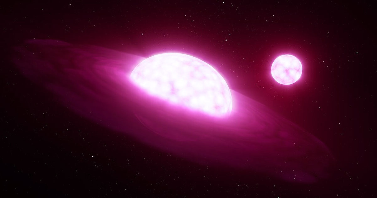 “Our best interpretation so far is that we caught this binary system in a moment shortly after one of the stars had sucked the atmosphere off its companion star,” said Julia Bodensteiner, KU Leuven researcher and coauthor, in the statement.