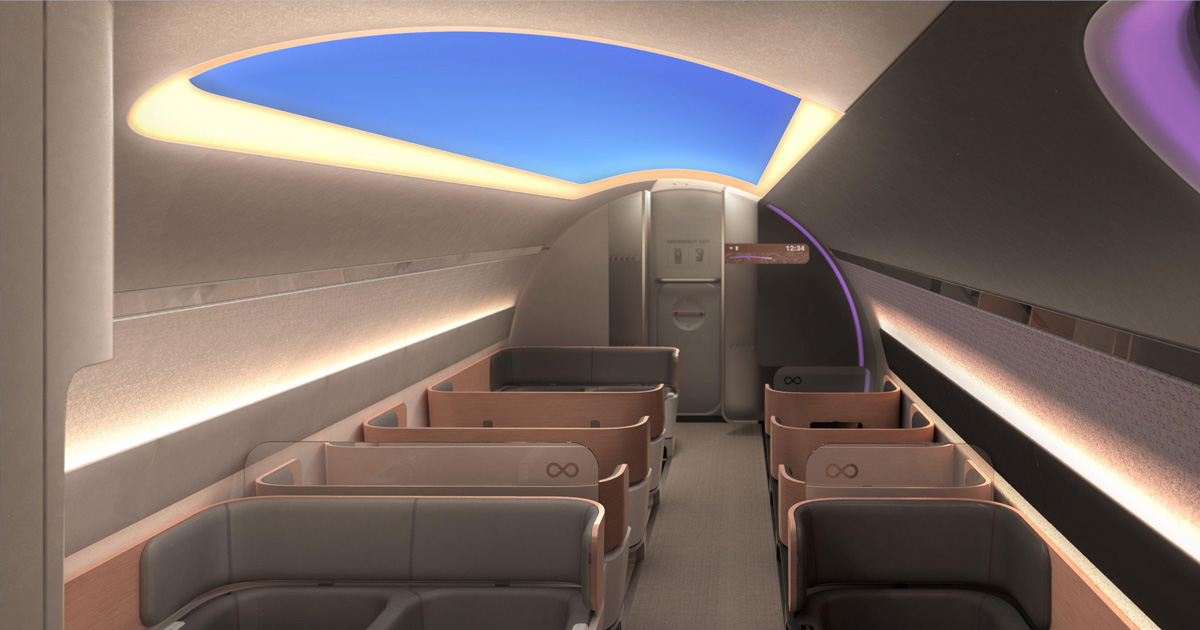 The biggest difference, however, is that there are no windows — except for what appears to be a generous skylight above. That’s because the magnetically levitating pod is racing through an vacuum tube at speeds of up to 760 mph.