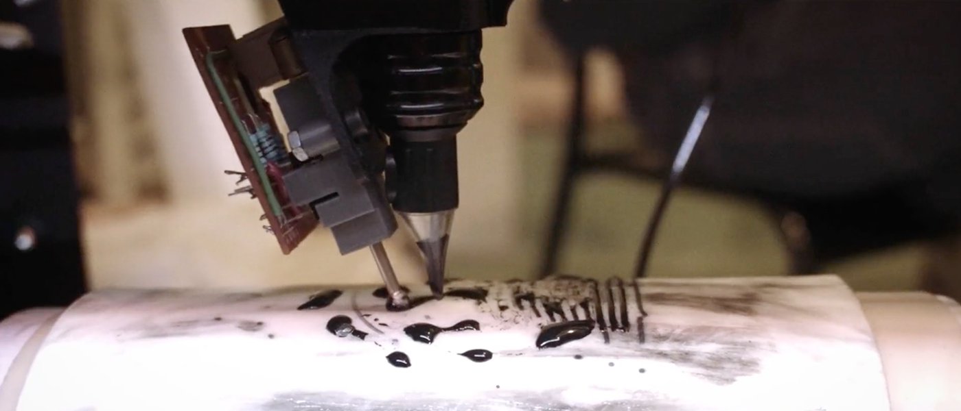 French designers Pierre Emm and Johan da Silveira worked with Autodesk engineer David Thomasson to equip an industrial robot with a tattoo machine — and to test it on Emm.