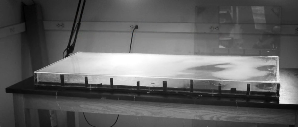 Starting from the outermost bands, a white bacterial (E.coli) colony begins to move. The colony slowly creeps towards the middle, from both sides of the petri dish — an eerie white stampede across a field of black. As it reaches each band with increased levels of antibiotics, the bacteria momentarily stops, until a mutated, immune bacteria picks up the pace and begins creeping again. This continues until the center of the petri dish, with 1000 times the amount of antibiotics, the last line of defense, turns completely white.