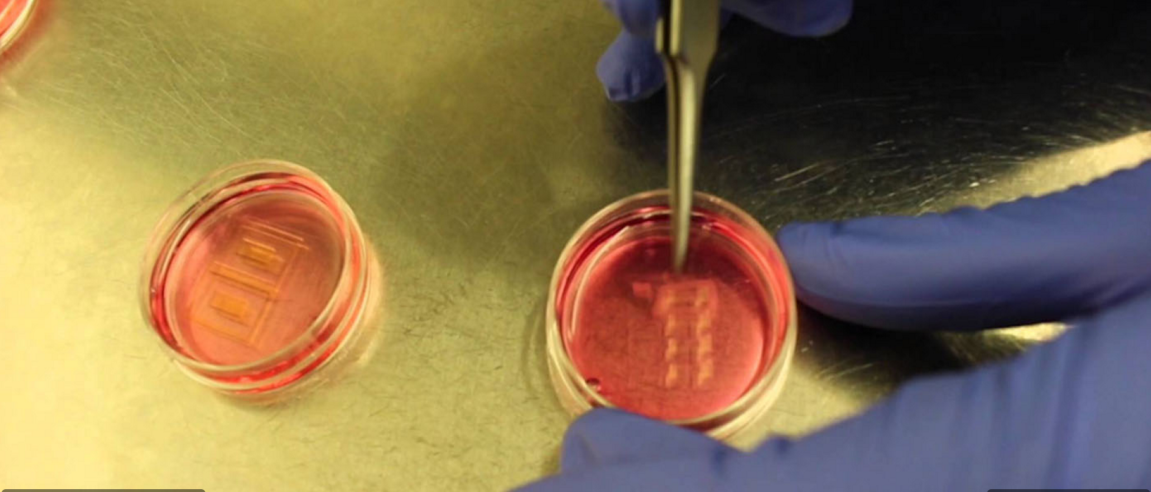 The researchers even exercised the bio-bots daily with flashing blue lights, training and conditioning the tissue so it would be stronger and capable of greater movement and flexibility.