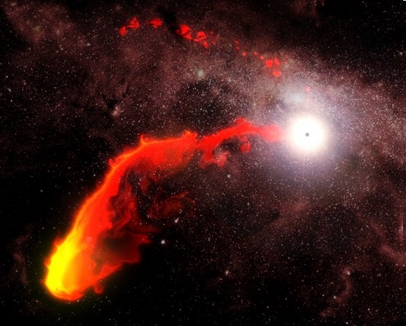 - Illustration of gas cloud G2 approaching Sgr A* CREDIT: (ESO/MPE/M.Schartmann/J.Major)