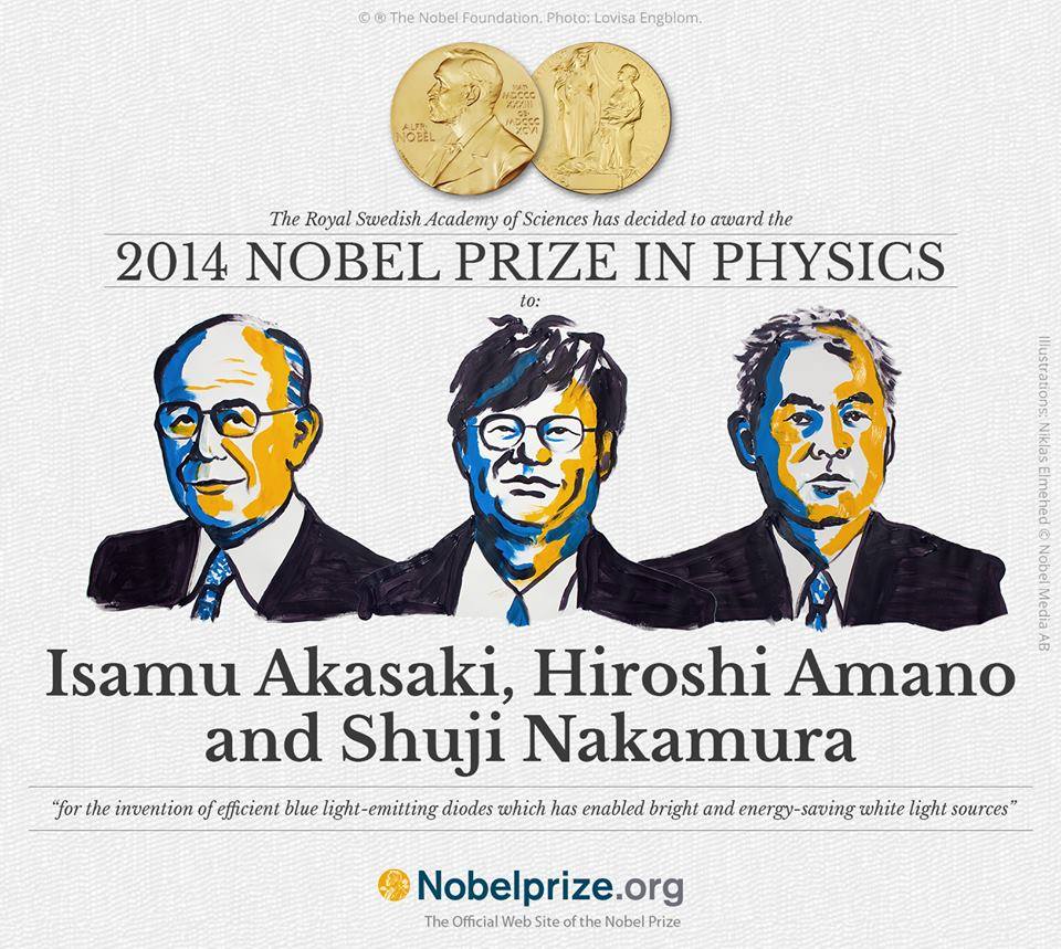 The 2014 Nobel Prize for Physics has been awarded to Isamu Akasaki, Hiroshi Amano and Shuji Nakamura. The prize was awarded to these individuals, “for the invention of efficient blue light-emitting diodes which has enabled bright and energy-saving white light sources”.