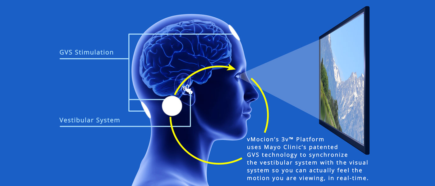 This is what entertainment technology company vMocion is addressing with the use of Galvanic Vestibular Stimulation (GVS) technology licensed from the Mayo Clinic. The technology was developed by the clinic’s Aerospace Medicine & Vestibular Research Laboratory over a decade.
